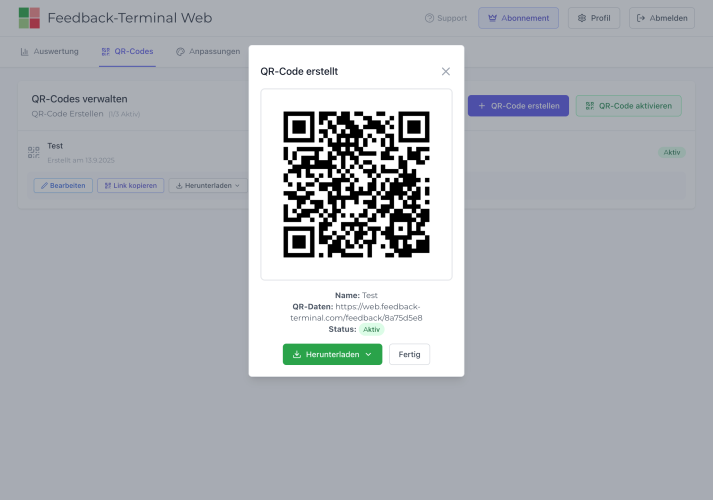 Mit unseren digitalen Feedback-Seiten machen Sie es Kund:innen und Mitarbeiter:innen besonders einfach, ihre Meinung mitzuteilen. Ein Scan des QR-Codes genügt, und schon öffnet sich Ihre individuelle Feedback-Seite.